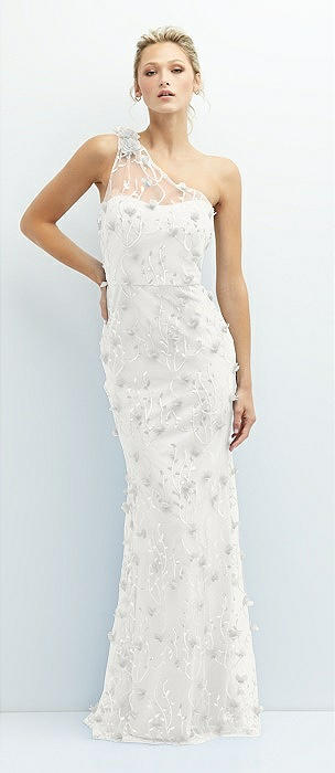 One-Shoulder Fit and Flare 3D Floral Embroidered Dress in ivory