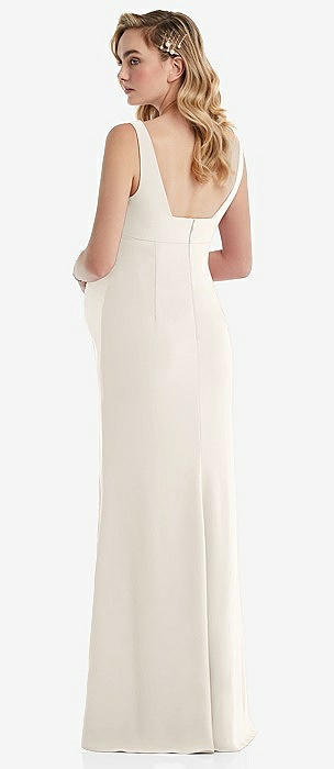 Wide Strap Square Neck Maternity Trumpet Gown in ivory