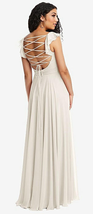 Low Tie-Back Maxi Dress with Adjustable Skinny Straps in ivory