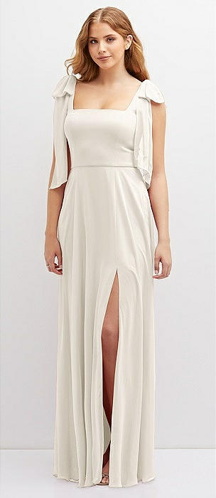 Bow Shoulder Square Neck Chiffon Maxi Dress in ivory