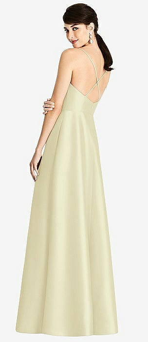 Strapless Satin High Low Dress with Pockets in butter yellow
