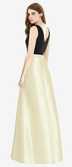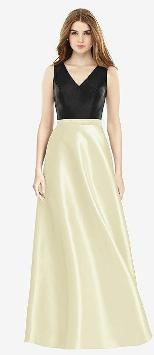 V-Neck Full Skirt Satin Maxi Dress in butter yellow