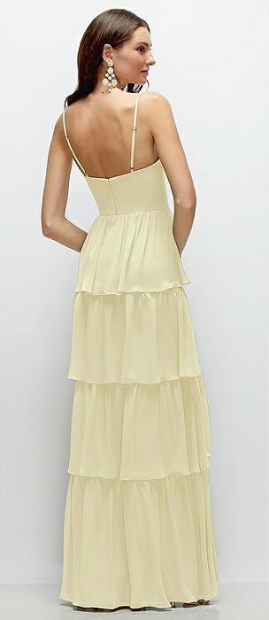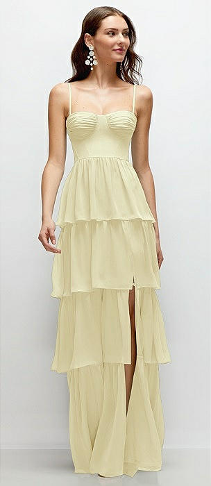 Bustier-Style Chiffon Tiered Ruffle Maxi Dress with Adjustable Straps in butter yellow