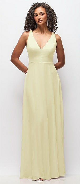 Deep V-Neck Chiffon Maxi Dress in butter yellow
