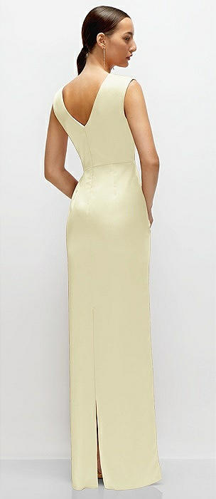 Sleeveless Satin Trumpet Gown with Bow at Open-Back in butter yellow