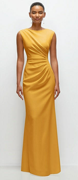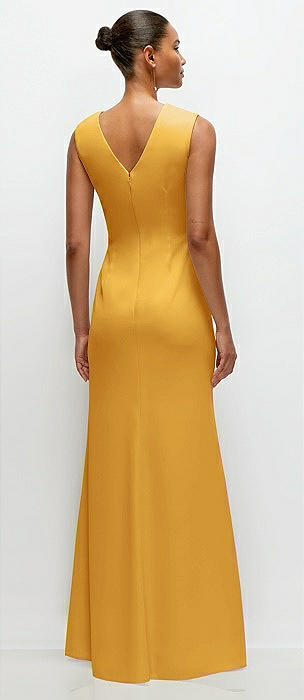 Sleeveless Cap Shoulder Crepe Maxi Dress with Trumpet Skirt in NYC yellow