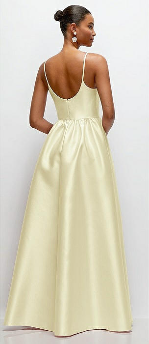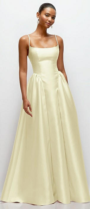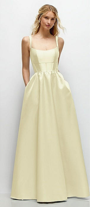 Scoop Neck Drop Basque Skirt Satin Maxi Dress with Pockets in butter yellow