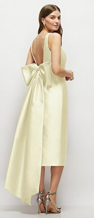 Scoop Neck Satin Column Midi Dress with Bow at Empire Waist in butter yellow