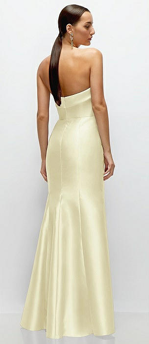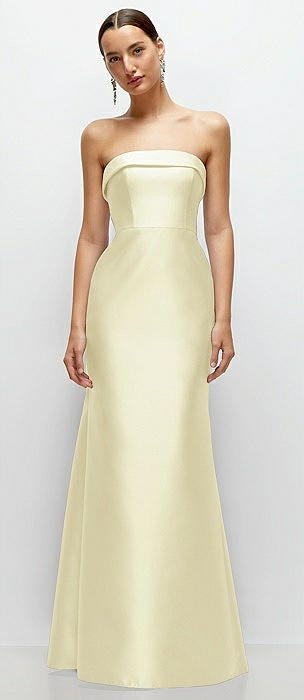 Strapless Cuff Neckline Satin Trumpet Gown in butter yellow