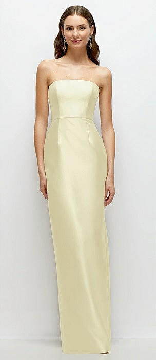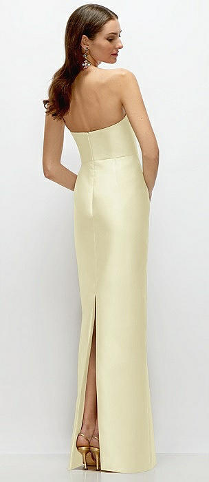 Strapless Satin Column Dress with Back Slit in butter yellow