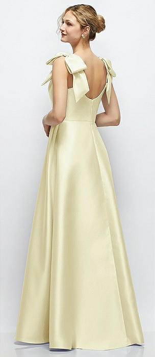 Deep V-Neck Satin Ball Gown with Shoulder Bows in butter yellow