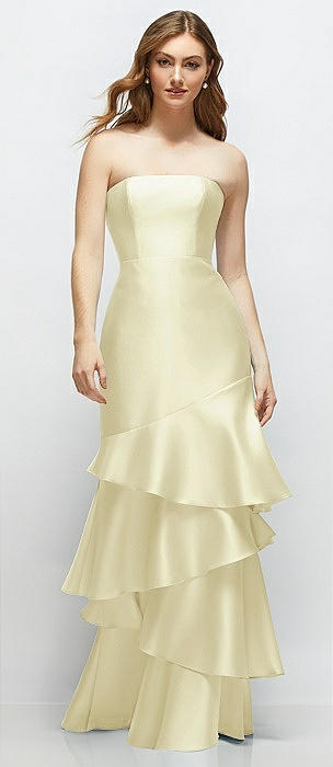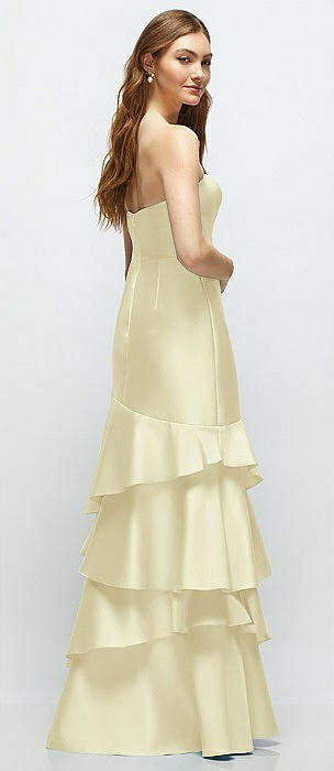 Strapless Bodycon Maxi Dress with Tiered Ruffle Skirt in butter yellow