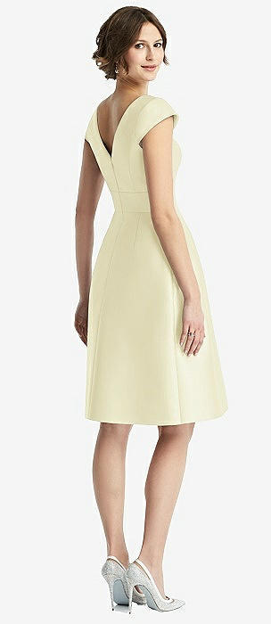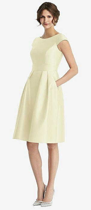 Cap Sleeve Pleated Cocktail Dress with Pockets in butter yellow