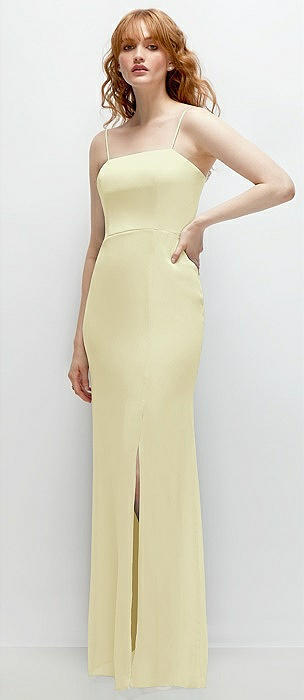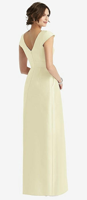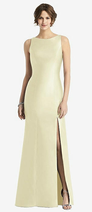 Tie-Back Cutout Trumpet Gown with Front Slit in butter yellow