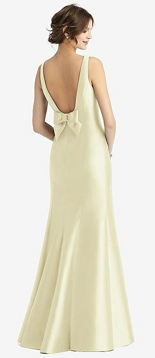 Sleeveless Satin Trumpet Gown with Bow at Open-Back in butter yellow