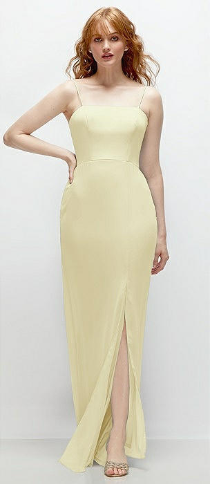 Tie-Shoulder Chiffon Maxi Dress with Front Slit in butter yellow