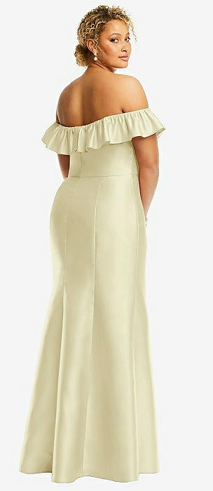 Off-the-Shoulder Ruffle Neck Satin Trumpet Gown in butter yellow