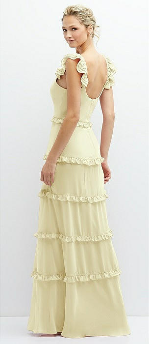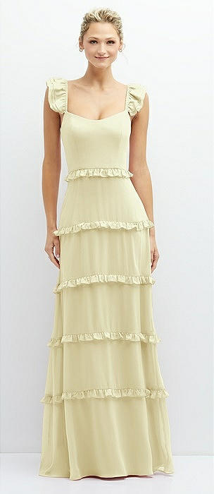 Tiered Chiffon Maxi A-line Dress with Convertible Ruffle Straps in butter yellow