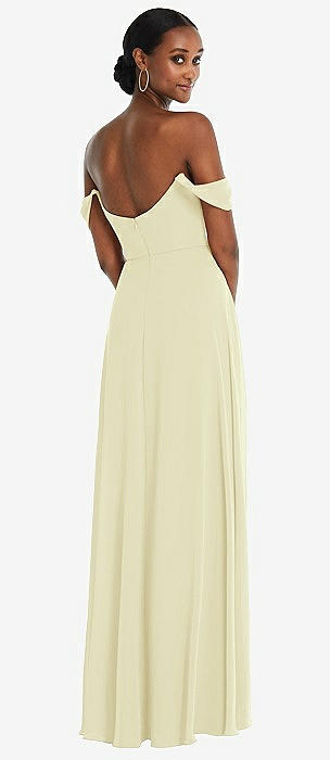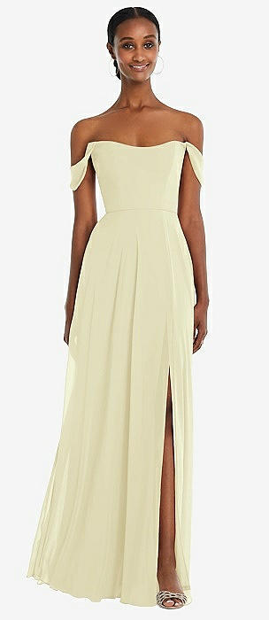 Off-the-Shoulder Basque Neck Maxi Dress with Flounce Sleeves in butter yellow
