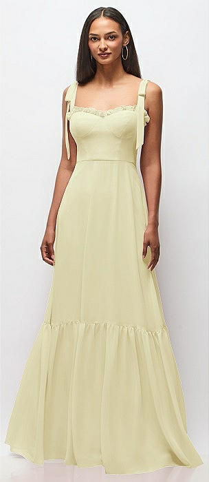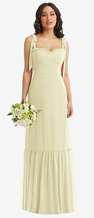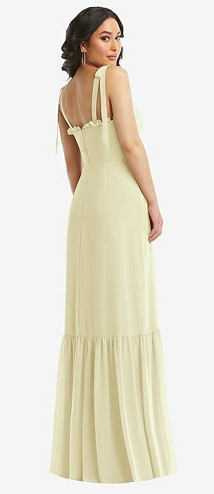 Tie-Shoulder Bustier Bodice Ruffle-Hem Maxi Dress in butter yellow