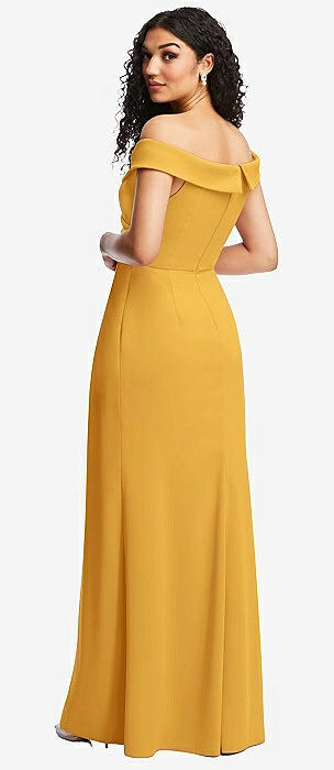 Off-the-Shoulder Crepe Column Maxi Dress with Bow-Pinch Detail in NYC yellow