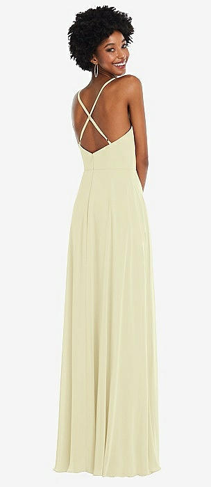 Faux Wrap Criss Cross Back Maxi Dress with Adjustable Straps in butter yellow