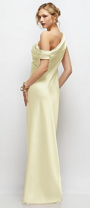 Draped Scarf One-Shoulder Bias Stretch Satin Maxi Dress in butter yellow