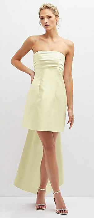 Strapless Satin Column Mini Dress with Oversized Bow in butter yellow