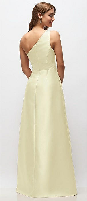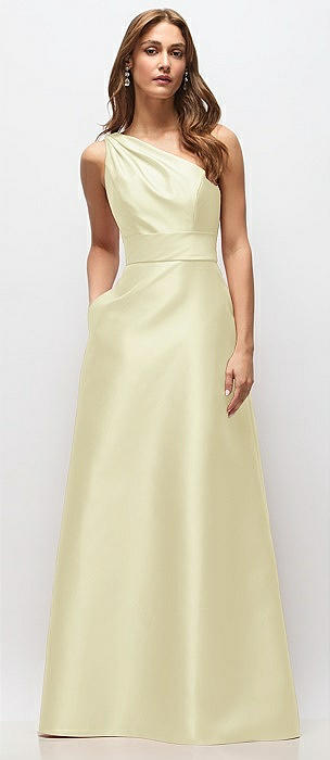 Draped One-Shoulder Satin Maxi Dress with Pockets in butter yellow