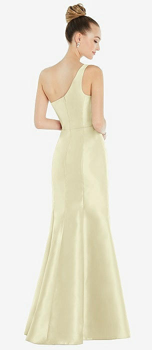 Bow One-Shoulder Satin Trumpet Gown in butter yellow