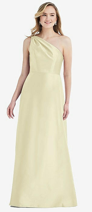 Bow One-Shoulder Satin Trumpet Gown in butter yellow