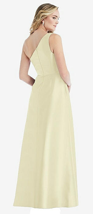 Draped One-Shoulder Satin Maxi Dress with Pockets in butter yellow