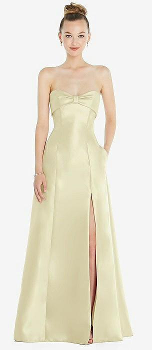 Bow Cuff Strapless Satin Ball Gown with Pockets in butter yellow