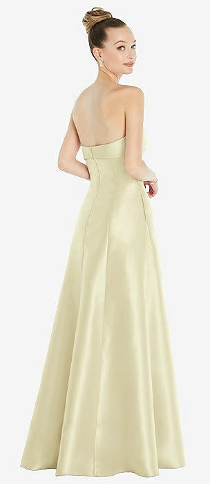 Strapless Notch Satin Gown with Pockets in butter yellow