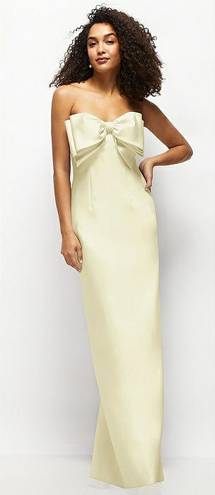 Strapless Satin Column Maxi Dress with Oversized Handcrafted Bow in butter yellow