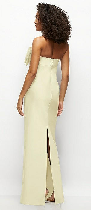 Strapless Draped Bodice Column Dress with Oversized Bow in butter yellow
