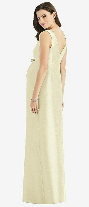 Scoop Neck Satin Column Maxi Dress with Bow at Empire Waist in butter yellow