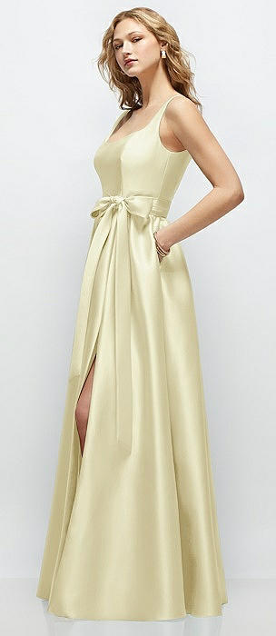 Scoop-Neck Tank Bodice Maxi Dress with Full Skirt in butter yellow