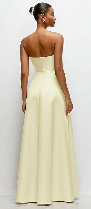 Strapless Draped Cat-Eye Satin Maxi Dress with Full Skirt in butter yellow