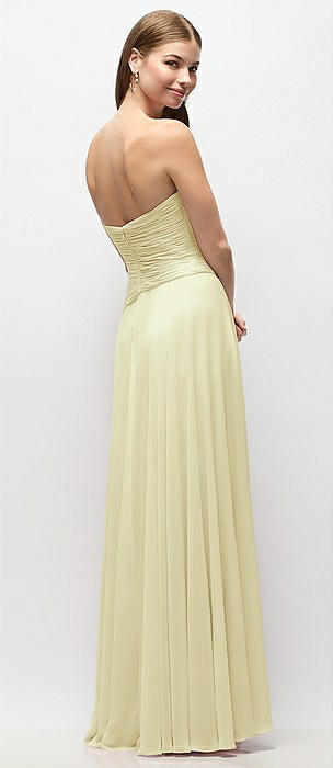 Strapless Chiffon Maxi Dress with Asymmetrical Ruched Drop Waist in butter yellow