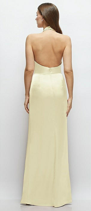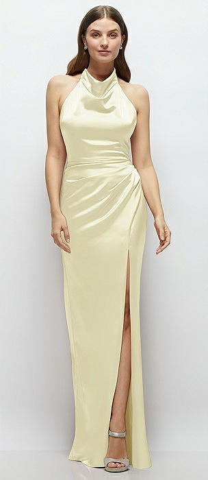 Cowl Halter Open-Back Satin Maxi Dress in butter yellow