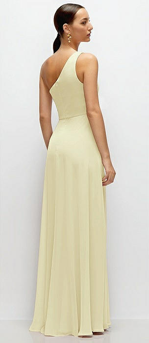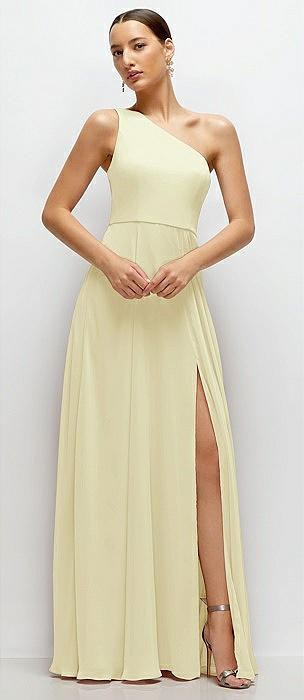Chiffon One-Shoulder Maxi Dress with Circle Skirt in butter yellow