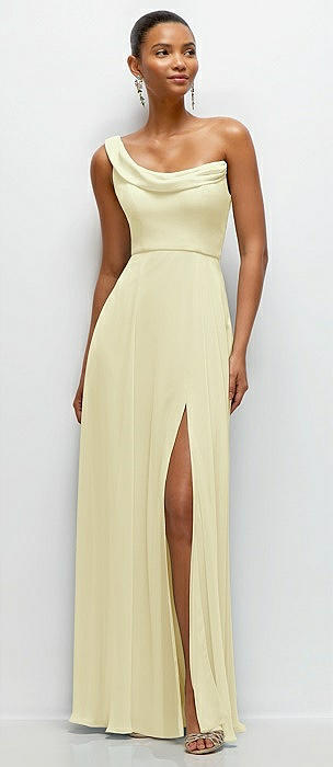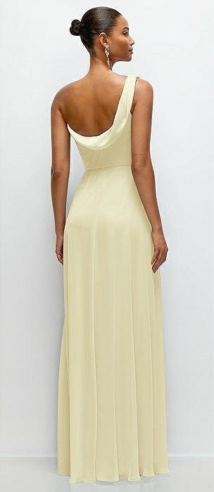 Chiffon One-Shoulder Maxi Dress with Draped Cowl Neckline in butter yellow