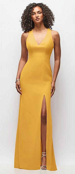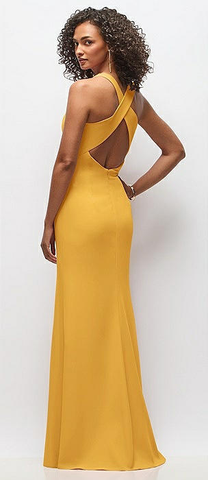 Tie Halter Open Back Trumpet Gown in NYC yellow