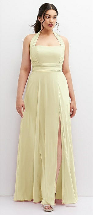 Chiffon Convertible Maxi Dress with Multi-Way Tie Straps in butter yellow