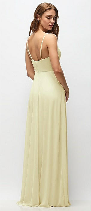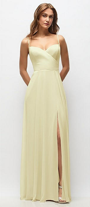 Wrap Bodice Chiffon Maxi Dress with Adjustable Spaghetti Straps in butter yellow