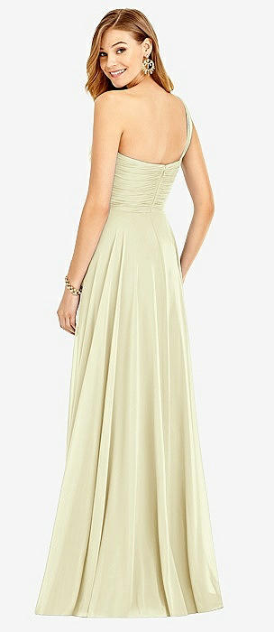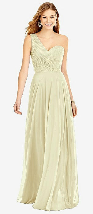 One-Shoulder Draped Chiffon Maxi Dress - Dani in butter yellow