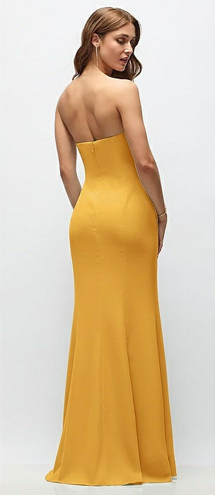Strapless Fit and Flare Crepe Maxi Dress in NYC yellow