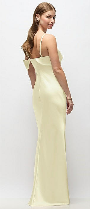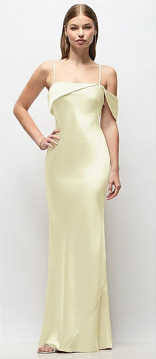 Asymmetrical Cuff Neck Stretch Satin Bias Maxi Dress with Adjustable Spaghetti Straps