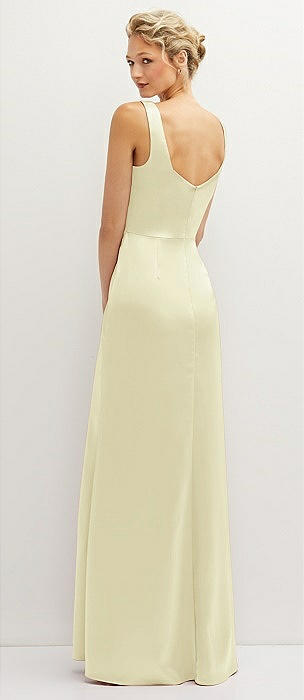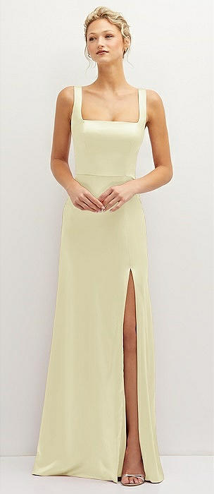 Square-Neck Satin A-line Maxi Dress with Front Slit in butter yellow
